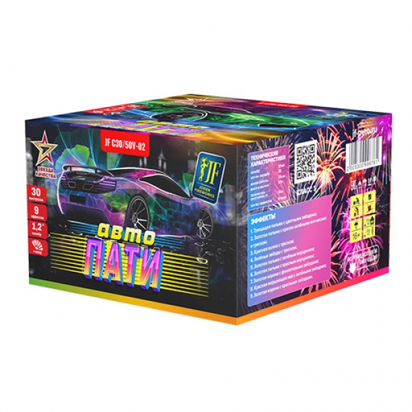 Эффект: 1. Трещащая пальма с цветными звзёдами 2. Золотая пальма с красно-зелёными кончиками и треском 3. Красная волна с треском 4. Зелёные звёзды с треском 5. Золотая пальма с зелёным мерцанием 6. Золотая пальма с красным мерцанием 7. Золотая корона с фиолетовыми звёздами 8. Красная мерцающая ива с зелёными звёздами 9. Золотая корона с красными звёздами